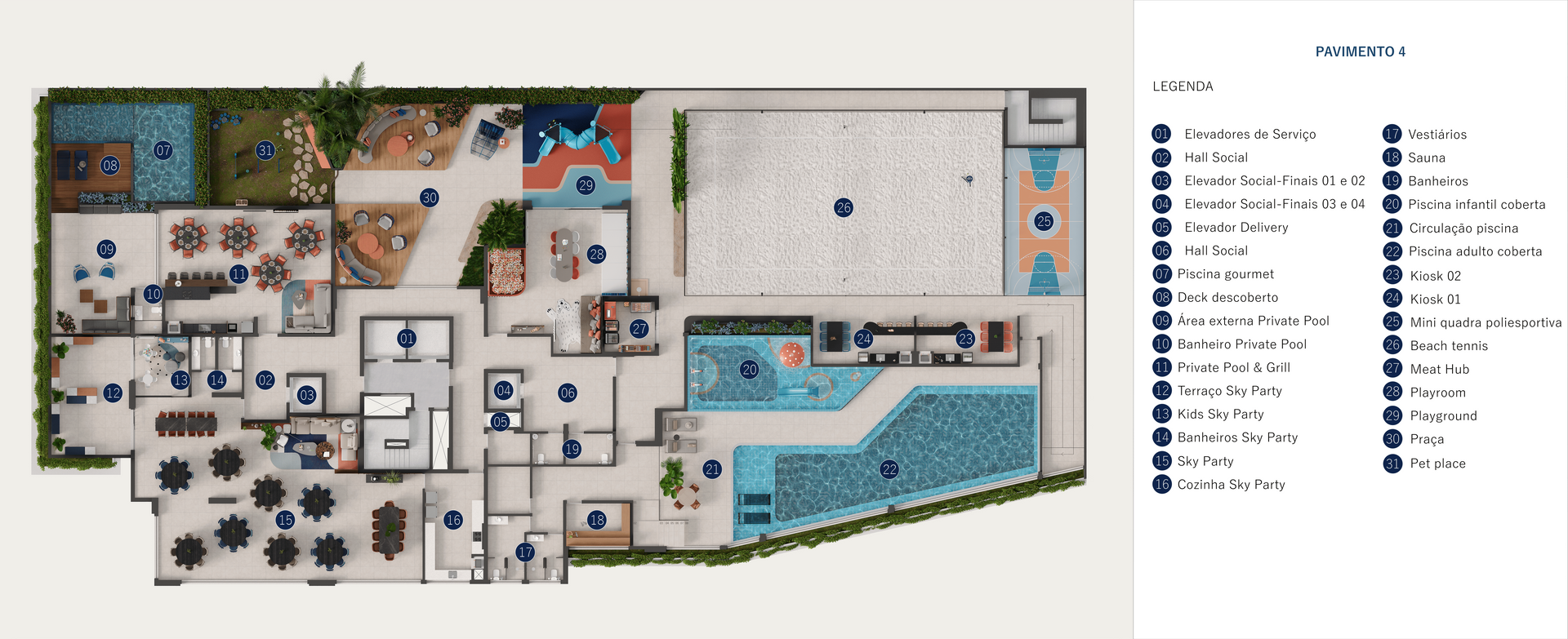 Mais do que endereço, o Sky é um clube vertical com mais de 2.500 m² dedicados a lazer, distribuídos em mais de 40 ambientes para viver bem todos os dias — salão de festas, gourmet, piscina coberta aquecida, sauna, academia, beach tennis, coworking e muito mais. É exclusividade para receber, praticidade para o dia a dia e um cenário ideal para famílias que desejam subir de nível sem abrir mão da tranquilidade.