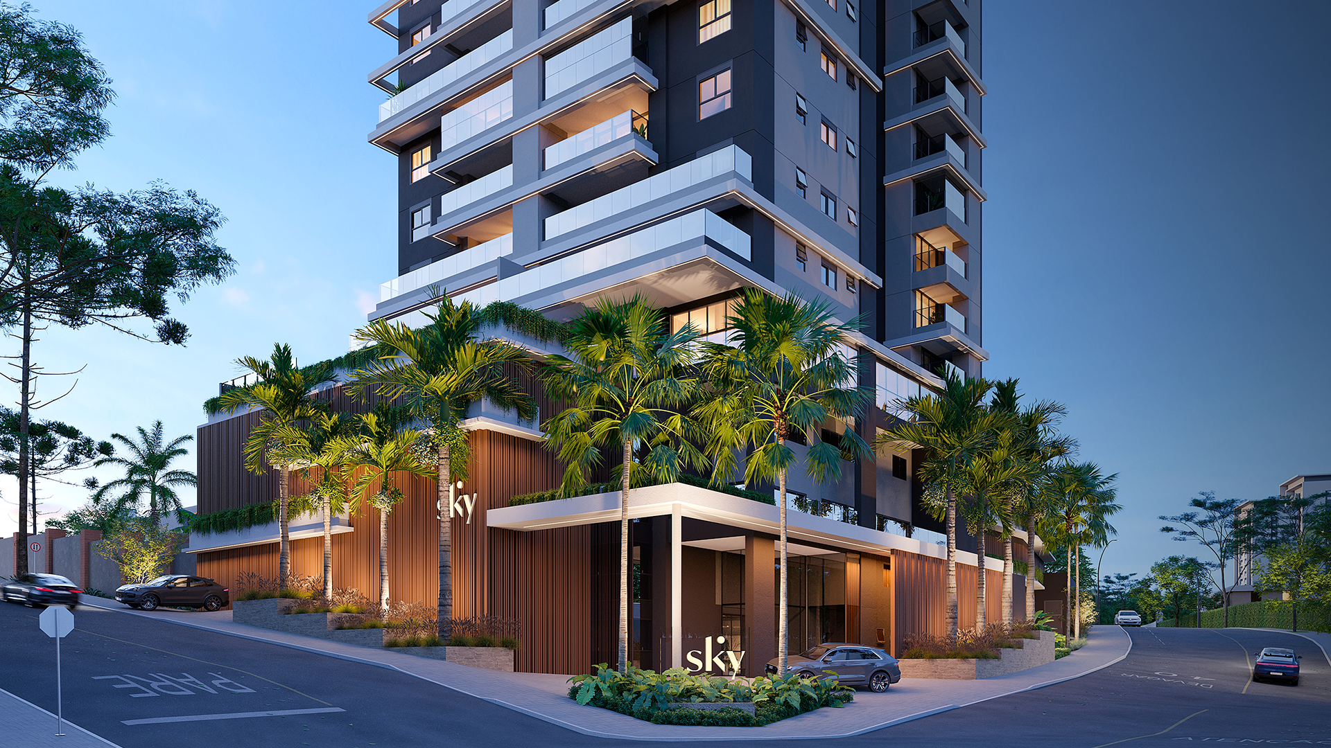 Na esquina da Rua Diva Nadir com a Rua Marie Curie, o SKY ocupa um ponto alto de urbanidade em Apucarana: perto do essencial, com acessos simples e a tranquilidade de um entorno residencial. É um endereço que equilibra praticidade e contemplação — conexões rápidas ao dia a dia, serviços por perto e vistas amplas que reforçam a sensação de viver em um lugar naturalmente privilegiado.