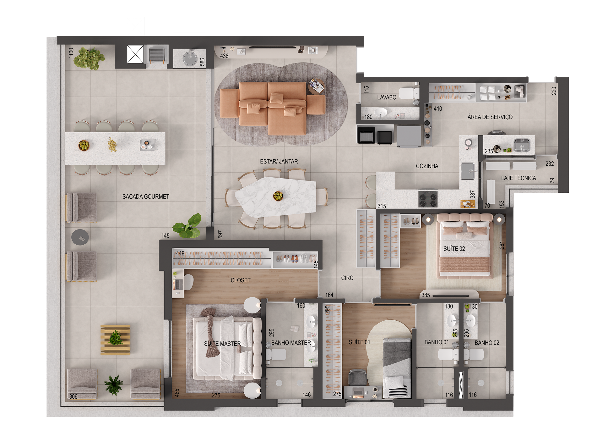 3 suítes